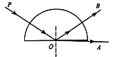 如图所示,只含黄光和紫光的复色光束PO,沿半径方向射入空气中的玻璃半圆柱后,被分成两光束OA和OB沿如图所示方向射出,则 ( )