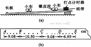 11. (8分)某同学设计了一个用打点计时器研究动量守恒定律的实验:在小车A的前端粘有橡皮泥,推动小车A使之做匀速运动,然后与原来静止在前方的小车B相碰并黏合成一体,继续做匀速运动。他设计的具体装置如图(a)所示,在小车A后连着纸带,电磁打点计时器电源频率为50HZ,长木板右端下面垫放小木片用以平衡摩擦力。