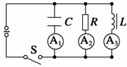 在交流电路中,交流电源电动势的有效值不变,频率可以改变,在图示电路的电键闭合时,使交流电源的频率减小,可以观察到下列论述的哪种情况