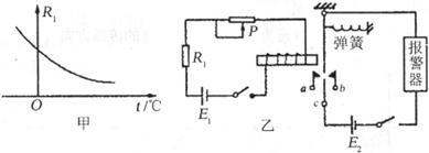传感器担负着信息采集的任务,在自动控制中发挥着重要作用,传感器能够将感受到的物理量(如温度、光、声等)转换成便于测量的量(通常是电学量),例如热传感器,主要是应用了半导体材料制成的热敏电阻,热敏电阻随温度变化的图线如图甲所示,图乙是用热敏电阻