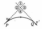 粒子经过某一原子核附近时的轨迹如图所示.图中P、Q为轨迹上的点,虚线是经过P、Q两点并与轨迹相切的直线,两虚线和轨迹将平面分为四个区域.不考虑其他原子核对