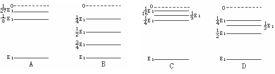 11.氢原子的基态能量为E1,图中的四个能级图,正确代表氢原子能级的是( )