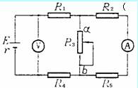7.在如图所示的电路中,R1、R2、R3和R4皆为定值电阻,R5为可变电阻,电源的电动势为E,内阻为r。设电流表A的读数为I,电压表V的读数为U。当R5的滑动触点向图中a端移动时 ( )
