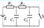15.(10分)如图所示,E=10V,电源内阻不计,R1=4Ω,R2=6Ω,C1=C2=30μF。先闭合开关S,待电路稳定后再断开S,求断开S后流过电阻R1的电量。