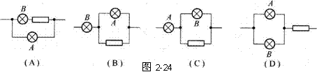 4.两只额定电压均为110V的灯泡A和B,额定功率分别为100W和40W,为了使它们接到220V电源上能正常发光,同时电路消耗的电功率最小,如图2-24所示电路中最合理的是图( ).