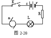 如图2-28所示,已知电源电动势为20V,内阻不计,当接入固定电阻R=5Ω时,电路中标有“3V 4.5W”的灯泡L和内阻r′=0.5Ω的小型直流电动机恰能正常工作,求: