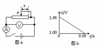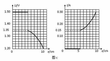 (2)第二组同学也利用如图a所示的电路图进行实验测量另一节干电池,初始时滑片P在最右端,但由于滑动变阻器某处发生断路,合上电键后发现滑片P向左滑过一段距离x后电流表有读数,于是该组同学分别作出了电压表读数U与x、电流表读数I与x的关系图,如图c所示,则根据图象可知,电池的电动势为 V,内阻为 W。