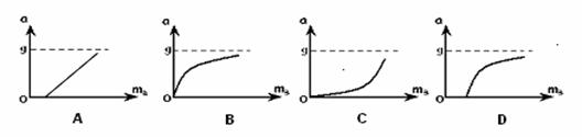 如图所示,一轻绳通过一个光滑的定滑轮,两端分别各系一质量为mA和mB的物体,物体A放在地面上。开始时静止。当B的质量发生变化时,物体A的加速度大小与物体B质量的定性关系为下图中的(