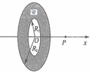 10.图示为一个内、外半径分别为R1和R2的圆环状均匀带电平面,其单位面积带电量为