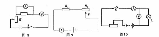 11、如图8是小明连接的“电流跟电压、电阻的关系”实验电路图,闭合开关S,电流表,电压表可能出现的现象是( )