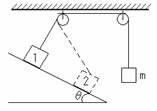 如图,细绳跨过两个定滑轮,左端与斜面上质量为M的物体相连,右端悬挂质量为m的物体。质量为M的物体在位置1处静止时,与其连接的一段绳垂直于斜面,M与斜面间的动摩擦因数为μ,斜面倾角为θ。若将M沿斜面向下缓慢拉至位置2,它仍能保持静止状态,绳与滑轮间的摩擦不计,则下列说法正确的是( )