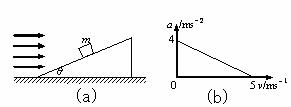 27.(8分)如图(a),质量m=1kg的物体沿倾角q=37°的固定粗糙斜面由静止开始向下运动,风对物体的作用力沿水平方向向右,其大小与风速v成正比,比例系数用k表示,物体加速度a与风速v的关系如图(b)所示。求:
