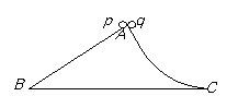 右面是曲面AC。已知AB和AC的长度相同,两个小球p、q同时从