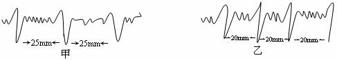 9.心电图是现代医疗诊断的重要手段,医生从心电图上测量出相邻两波峰的时间间隔,即为心动周期,甲、乙两人的心电图如图所示,医生通过测量后记下甲的心率是60次/分,则心电图机图纸移动的速度v以及乙的心率为