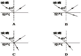 5. 一束光线从折射率为1.5的玻璃内射向空气,在界面上的入射角为45°.以下四个光路图中,正确的是