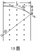 19.带电粒子的质量m=1.7×10-27kg,电荷量q=1.6×10-19C,以速度v=3.2×106m/s沿垂直于磁场同时又垂直于磁场边界的方向进入匀强磁场,磁场的磁感强度为B=0.17T,磁场的宽度为L=10cm,求:(不计重力)