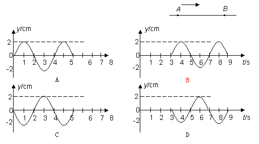 13.一列简谐横波以1m/s的速度沿绳子由A向B传播。质点A、B间的水平距离x=3m,如图所示。若t=0时质点A刚从平衡位置向上开始振动,则B点的振动图象为下图中的