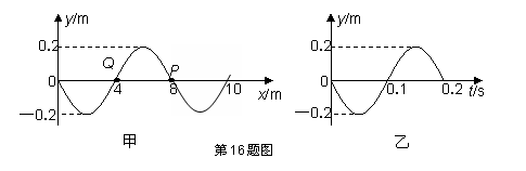 16.(10分)如图所示,甲为某一波在t=0s时的图象,乙为该波中x=8m的P质点的振动图象。求: