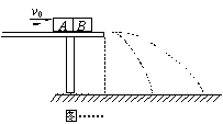 如图所示,两块完全相同的木块A与B并排放在光滑的水平桌面上。A、B的质量均为0.4kg,一颗质量0.1kg的子弹以140m/s的水平速度从左边飞来,射穿A后射进B并留在B中,子弹射穿A的过程中,A与B始终并排挨着,测得A、B落地点距桌边的水平距离之比为1:2,求: