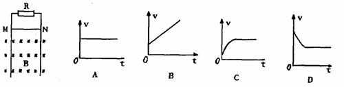 10、如下左图所示,两根竖直放置的光滑平行轨道,其一部分处于垂直导轨所在平面,且有上下水平边界的匀强磁场中,一根金属杆MN呈水平状沿导轨滑下,在与导轨和电阻R组成的闭合电路中(其他电阻不计),当金属杆MN进入磁场区后,其运动的速度图像可能是如下右图中的![]()
