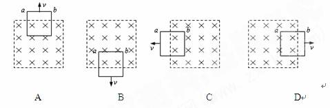 6.粗细均匀的电阻丝围成的正方形线框置于有界匀强磁场中,磁场方向垂直于线框平面,其边界与正方形线框的边平行。现使线框以同样大小的速度沿四个不同方向平移出磁场,如图所示,则在移出过程中线框一边a、b两点间的电势差绝对值最大的是( )