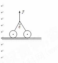 18、如图所示,两个完全相同的小球,重力大小为G,两物体与地面间的动摩擦因数均为μ,一根轻绳的两端固定在两个球上,在绳的中点施加一个竖直向上的拉力,绳被拉直后,两段绳的夹角为θ,求当F至少为多大时,两球将会发生相对滑动?