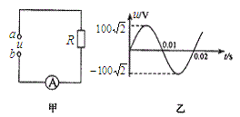 如图甲所示,电阻R的阻值为50Ω,在ab间加上图乙所示的正弦交流电,则下面说法中错误的是( )