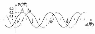 19、一列横波在x轴线上传播着,在t1=0和t2=0.005秒时的波形曲线如图所示.