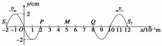 3、如图所示,两列简谐横波分别沿x轴正方向和负方向传播,两波源分别位于x= -2×10-1 m和x=12×10-1 m处,两列波的波速均为v=0.4 m/s,两波源的振幅均为A=2 cm.图示为t=0时刻两列波的图象(传播方向如图),此刻平衡位置处于x=0.2 m和0.8 m的P、Q两质点刚开始振动.质点M的平衡位置处于x=0.5 m处,关于各质点运动情况的判断正确的是 ( )