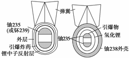 1.新中国成立后,为了打破西方霸权主义的核威胁,巩固我们来之不易的独立自主,无数科技工作者以全世界独一无二的热情及艰苦奋斗的精神投入核武器的研制工作之中,终于在1964年、1967年分别成功爆炸我国第一颗原子弹(atom bomb)和第一颗氢弹(hydrogen bomb).下列核反应方程可表示两弹的爆炸原理的是 ( )