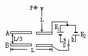 ,若将S置于b端,同时在A、B平行板间整个区域加一垂直纸面向里的匀强磁场,磁感应强度B=1T.在此情况下,在A板小孔正上方某处释放一个质量和电量与P均相同的小球Q,要使Q进入A、B板间后不与极板碰撞而能飞离磁场区,则释放点应距A板多高?(设A、B间电场可看作均匀的,且两板外无电场和磁场) K*s5u