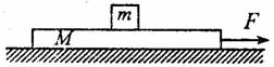 如图所示,质量为M的木板放在水平桌面上,一个质量为m的物块置于木板上。木板与 物块间、木板与桌面间的动摩擦因数均为μ。现用一水平恒力F向右拉木板,使木板和物块体共同向右做匀加速直线运动,物块与木板保持相对静止。已知重力加速度为g。下列说法正确的是 ( )