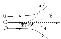 卢瑟福通过α粒子散射实验,判断出原子的中心有一个很小的核,并由此提出了原子的核式结构。如图所示的平面示意图中,①、③两条实线表示α粒子运动的轨迹,则沿②所示方向射向原子核的α粒子可能的运动轨迹为虚线中的