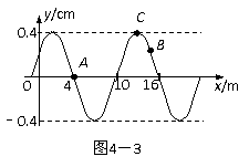 7.如图4-3所示,一列简谐横波在某一时刻的波的图象,A、B、C是介质中的三个质点.已知波是向x正方向传播的,波速为v=20m/s,下列说法中正确的是( )
