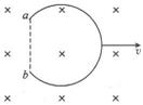 ,弧平面与磁场垂直,若其以速度v向右运动,如图所示,则ab两点间感应电动势的大小为_ ____,