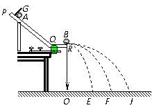 (12分)某同学用下图所示装置探究A、B两球在碰撞中动量是否守恒。该同学利用平抛运动测量两球碰撞前后的速度,实验装置和具体做法如下,图中PQ是斜槽,QR为水平槽。实验时先使A球从斜槽上某一固定位置G由静止开始滑下,落到位于水平地面的记录纸上,留下痕迹。重复上述操作10次,得到10个落点痕迹。再把B球放在水平槽上靠近槽末端的地方,让A球仍从位置G由静止开始滑下,和B球碰撞后,A、B球分别在记录纸上留下各自的落点痕迹。重复这种操作10次,并画出实验中A、B两小球落点的平均位置。图中O点是水平槽末端R在记录纸上的垂直投影点。其中米尺水平放置,且平行于G、R、O所在的竖直平面,米尺的零点与O点对齐。
