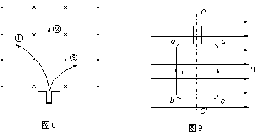 16.某种物质发射的三种射线在图8所示的磁场中分裂成①、②、③三束。那么在这三束射线中,带正电的是 ,带负电的是 ,不带电的是 。