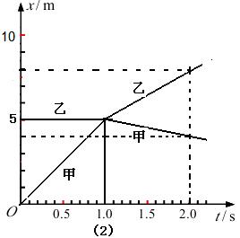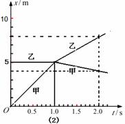22.(11分)如图(1)所示,在光滑的水平面上有甲、乙两辆小车,质量为30kg的小孩乘甲车以5m/s的速度水平向右匀速运动,甲车的质量为15kg,乙车静止于甲车滑行的前方,两车碰撞前后的位移随时间变化图象如图(2)所示。