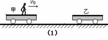 (2)乙车的质量; (3)为了避免甲乙两车相撞,小孩至少以多大的水平速度从甲车跳到乙车上?