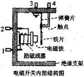 ②在有些应用电磁开关的场合,为了安全,往往需要在电磁铁吸合铁片时,接线柱3、4之间从断开变为接通。为此,电磁开关内部结构应如何改造?请结合本题中电磁开关内部结构图说明。