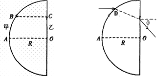 (2)若用一束平行于AO的水平光线从D点射到半圆柱形透明物体上,折射入半圆柱体后再从竖直表面射出,如图所示。已知入射光线与AO的距离为