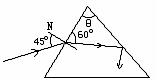 如图所示,一束光以45°的入射角从空气投射到三棱镜的一个侧面上,在棱镜上发生折射,折射光线与棱镜该侧面成60°角,并在棱镜另一侧面上恰好发生全反射。由此可知,该棱镜材料的折射率为________,该棱镜的顶角θ的大小为____