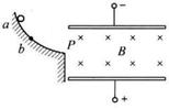 12、如图所示,带电平行板中匀强磁场方向水平垂直纸面向里,某带电小球从光滑绝缘轨道上的a点自由滑下,经过轨道端点P进入板间后恰能沿水平作直线运动.现使小球从较低的b点开始下滑,经P点进入板间,在板间的运动过程中( ).