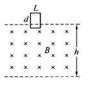 (12分)如图所示,一个质量m=16g、长d=0.5m、宽L=0.1m、电阻R=0.1Ω的矩形线框从高处自由落下,经过5m高度,下边开始进入一个跟线框平面垂直的匀强磁场.已知磁场区域的高度h=1.55m,线框进入磁场时恰好匀速下落(g取10m/s2).问:(1)磁场的磁感应强度多大?