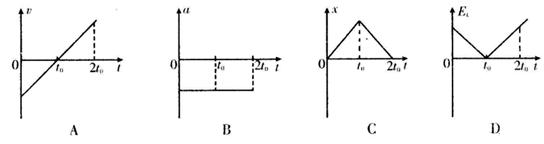 2、下图能正确反映竖直上抛运动速度、加速度、位移和动能随时间变化关系的是( )