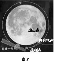 6、为纪念伽利略将望远镜用于天文观测400周年,2009年被定为以“探索我的宇宙”为主题的国际天文年。我国发射的“嫦娥一号”卫星绕月球经过一年多的运行,完成了既定任务,于2009年3月1日16时13分成功撞月。如图2为“嫦娥一号”卫星撞月的模拟图,卫星在控制点开始进入撞月轨道。假设卫星绕月球作圆周运动的轨道半径为R,周期为T,引力常量为G。根据题中信息,以下说法正确的是( )