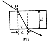 19.(10分)如图8所示,在测玻璃砖的折射率的实验中,多次改变入射角,测得入射角i及入射点和出射点处法线间距a,将数据在