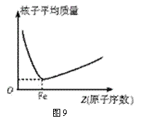(12分)精确的研究表明,不同的原子核,其核子的平均质量(原子核的质量除以核子数)与原子序数有如图9所示的关系。