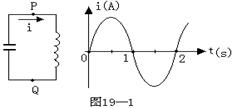11、如图19-1所示的LC振荡电路中,通过P点的电流变化规律如图所示,且把通过P点向右的电流规定为坐标轴i 的正方向。则: