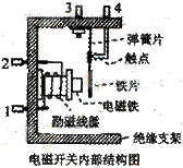 ②在有些应用电磁开关的场合,为了安全,往往需要在电磁铁吸合铁片时,接线柱3、4之间从断开变为接通。为此,电磁开关内部结构应如何改造?请结合本题中电磁开关内部结构图说明。